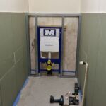 Alex und ich starteten am 8.Juli die erste Einkaufstour beim Hornbach und besorgten einiges an Baumaterial sowie Waschbecken und Pissoire. Wichtiger war aber noch, dass wir uns einen Überblick über die verschiedenen Toilettenvarianten verschaffen konnten. Gleiches gilt für die zukünftige Wandgestaltung. Bislang waren unsere Toilettenwände mit einem PVC Belag ausgekleidet. Diese PVC Beschichtung sollte nun erneuert werden und das alte Stand-WC mit aufgesetztem Spülkasten sollte durch eine ähnliches Modell ersetzt werden. Wir haben dann aber noch im Baumarkt die Entscheidung gefällt, dass wir mit höherwertigen Varianten und Materialien arbeiten müssen. Das bedeutet, die Wände müssen gefliest werden und das WC wird mit einem Vorwandelement befestigt. Das heißt eine zusätzliche Trockenbau Zwischenwand im Damen- und Herren WC. Da die Fliesen nicht direkt auf die vorhandenen Spanplatten geklebt werden können (Spanplatten dehnen sich bei Temperaturschwankungen zu stark aus und können bei Feuchtigkeit aufquellen), mussten die Wände zuvor noch mit Gipskartonplatten versehen werden.